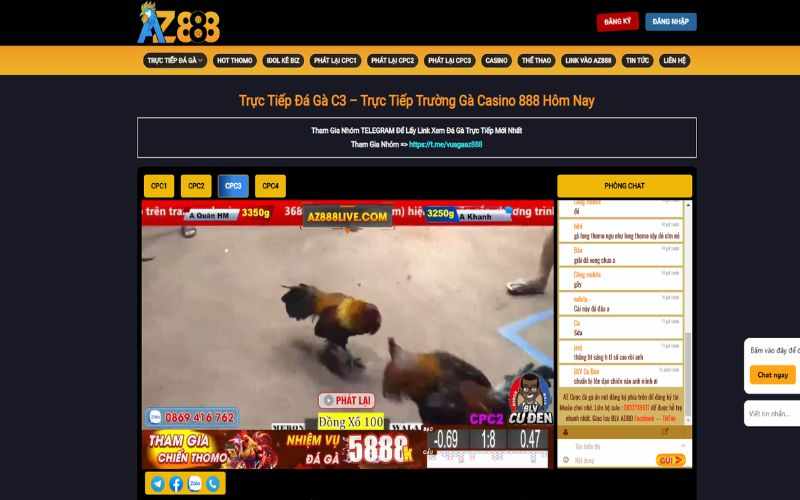 AZ888 phát sóng trực tiếp từ các bồ gà danh tiếng tại thomo, nơi diễn ra những trận đấu đỉnh cao giữa các chiến kê mạnh nhất. Người chơi có thể theo dõi mọi diễn biến ngay trên thiết bị cá nhân mà không cần phải đến tận nơi.